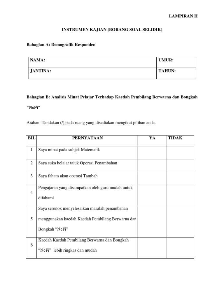 H Instrumen Kajian Borang Soal Selidik Pdf