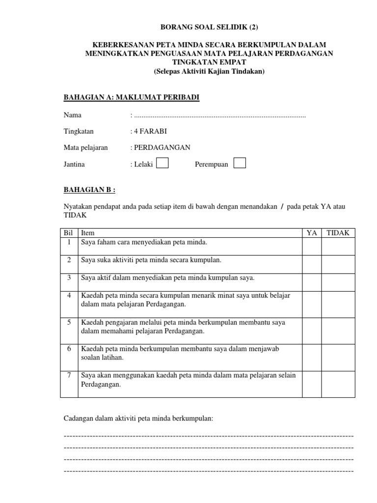 Contoh Borang Soal Selidik Pdf